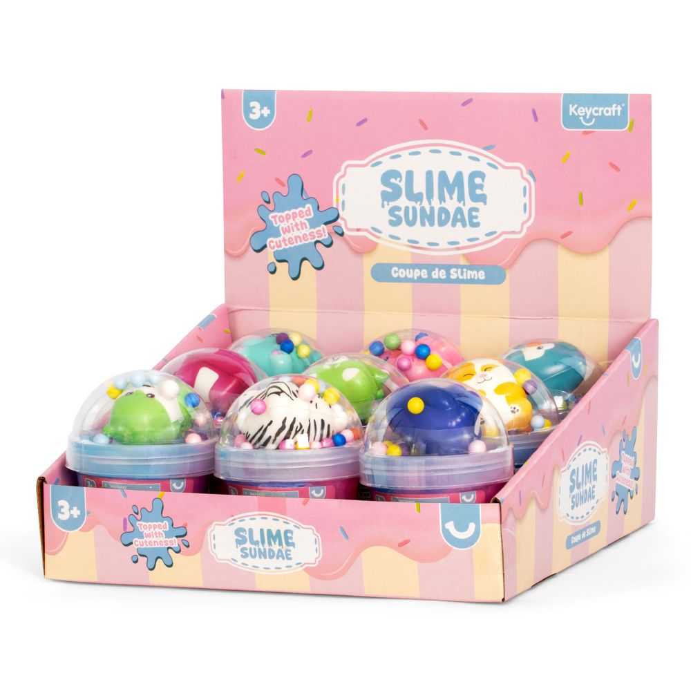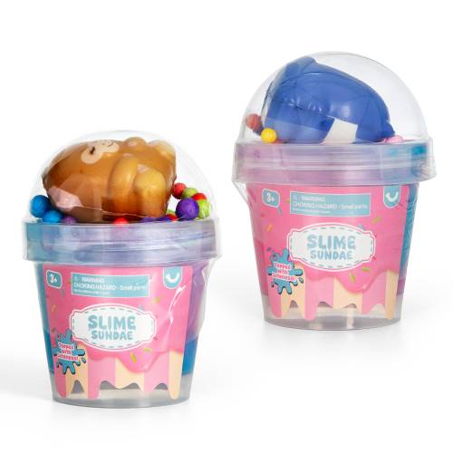 Get ready for some fun with our Slime Sundae! It's slimy, and gooey- just the way kids love it! With its cute packaging that looks just like a real sundae, this slime-tastic toy is sure to bring big smiles and endless hours of slimey fun!