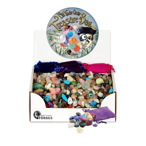 Fill your own treasure bag with this beautiful treasure bags display. Choose from a variety of coloured velvet pouches and select your favourite stones.